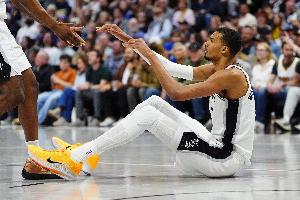 24直播网04月22日讯 NBA季后赛首轮G2,马刺与开拓者的比赛正在进行。文班亚马本场比赛次节摔倒之后面部着地,回更衣室检查后进入脑震荡保护协议。