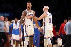 本场比赛,雷霆替补有5人得分,分别是华莱士6分、卡鲁索13分、杰林·威廉姆斯8分、麦凯恩7分、阿隆·维金斯2分。