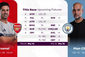 本赛季英超收官前,曼城和阿森纳在各项赛事都还有6场比赛。英超方面,曼城还剩5场比赛(3主2客),阿森纳还剩4场比赛(2主2客),两队都要对阵水晶宫,曼城的5个对手的英超排名普遍在上半区,阿森纳的剩余对手的英超排名则普遍在下半区。