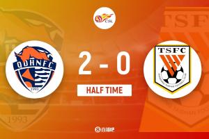 24直播网4月26日讯 中超第8轮,青岛海牛坐镇主场青岛青春足球场迎战山东泰山。上半场,刘骐玮判断失误送空门,林创益破门+失良机,埃朱马建功,刘洋中框,牟鹏飞门线神扑。半场战罢,青岛海牛2-0山东泰山。