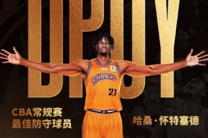 24直播网4月26日讯 CBA官方公布了2025-26赛季的常规赛最佳防守球员,上海男篮外援怀特塞德当选。