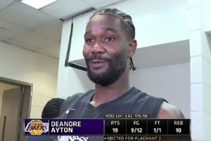 24直播网4月27日讯 NBA季后赛首轮G4,湖人96-115不敌火箭,系列赛大比分来到3-1。赛后艾顿接受了媒体采访,以下为采访全文。