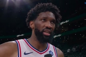 24直播网4月29日讯 NBA季后赛东部首轮G5,76人113-97战胜凯尔特人,大比分2-3。恩比德赛后在场边接受了媒体采访,以下为采访全文。