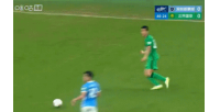24直播网04月21日讯 中超第7轮,深圳新鹏城vs北京国安。比赛第41分钟,卡尔采夫与孔特拼抢中犯规,被主裁判出示黄牌。慢镜头回放显示卡尔采夫鞋底踩到了孔特的小腿后侧。