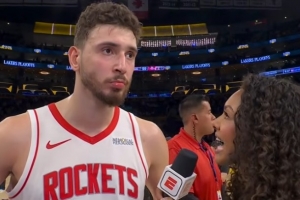 24直播网4月30日讯 NBA季后赛首轮G5,火箭99-93湖人,大比分追成2-3。申京赛后在场边接受了媒体采访,以下为采访全文。